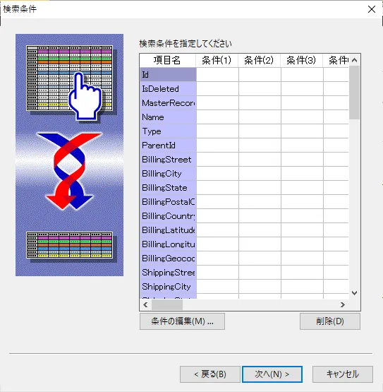 - 続いて絞り込み条件を指定します。任意の条件を指定してください。