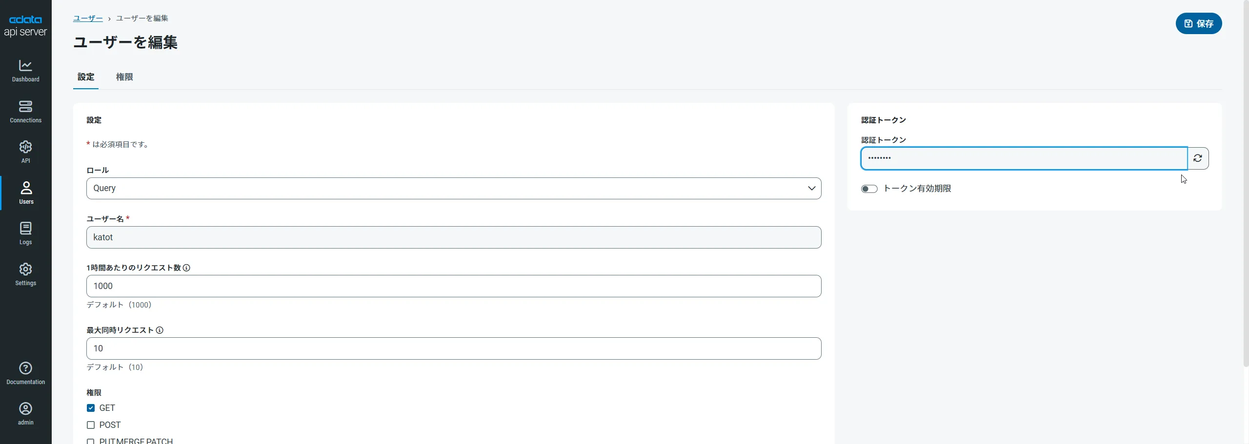 許可されたユーザーは、API Server の「Users」セクションで設定できます。