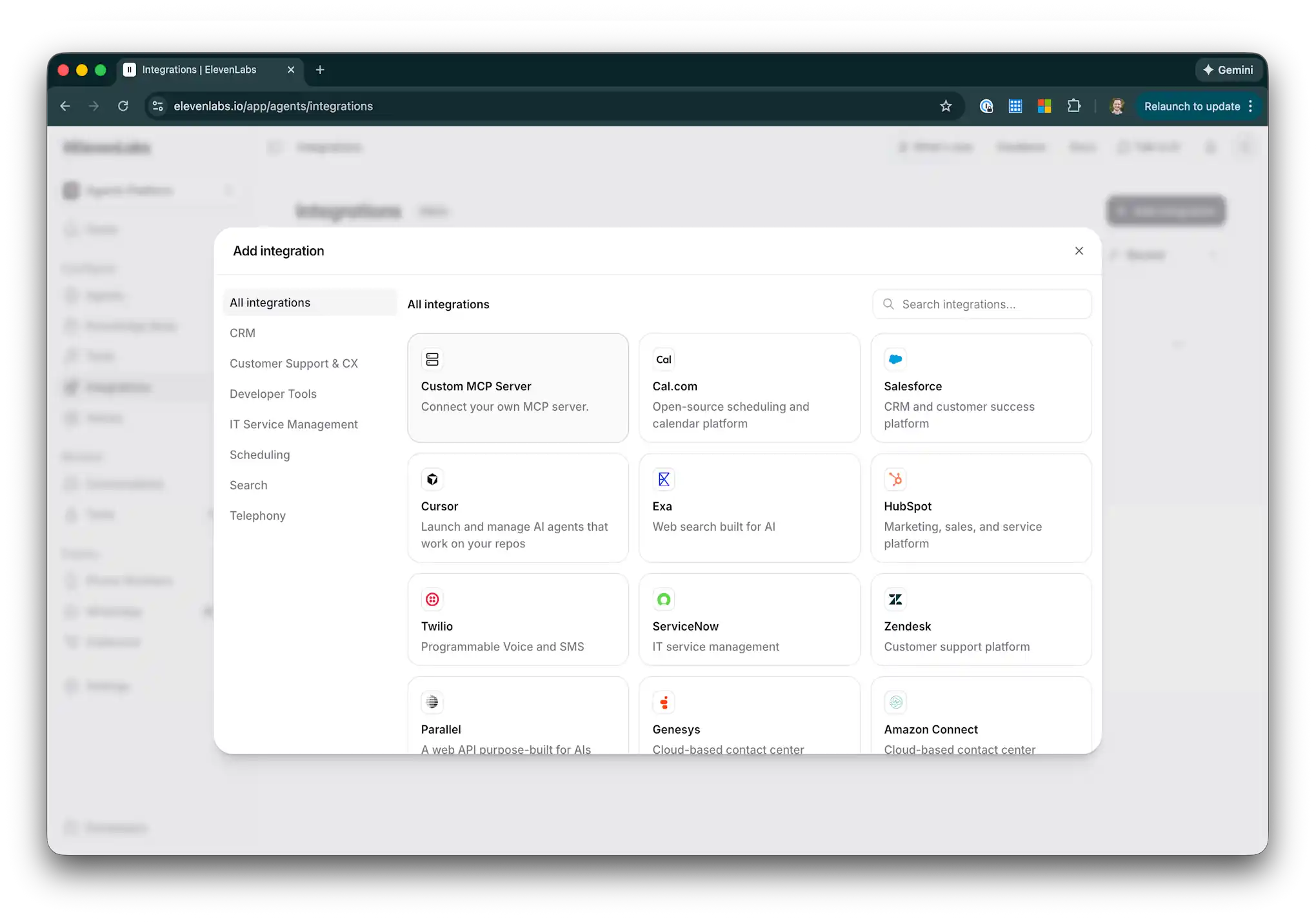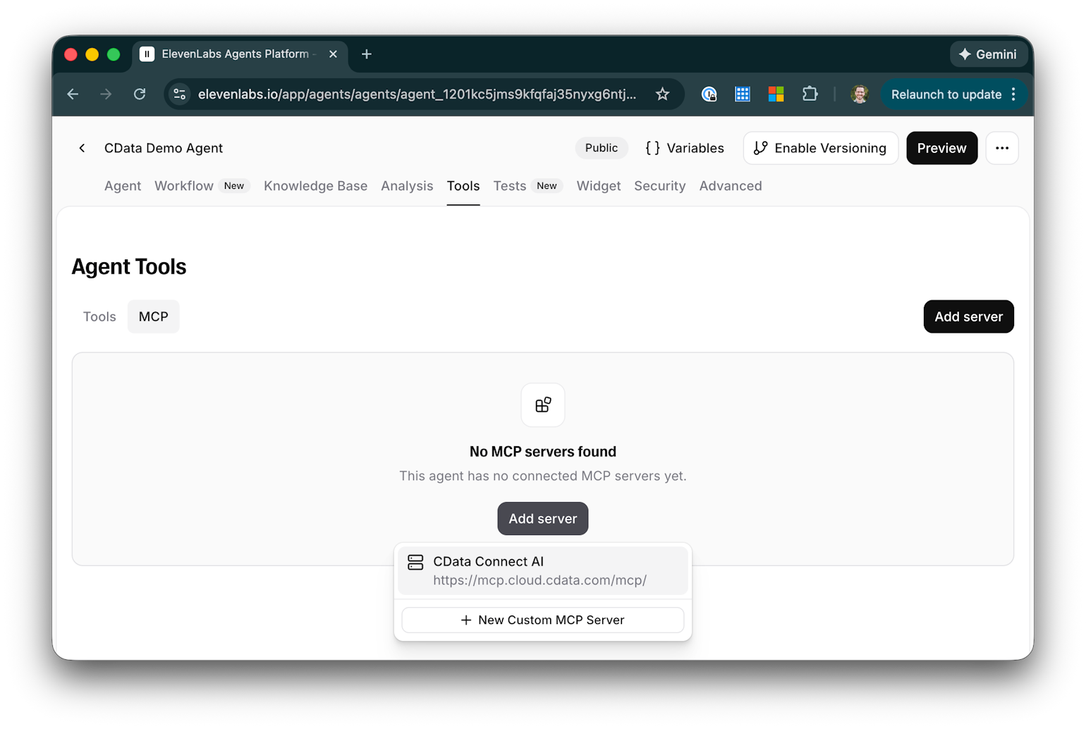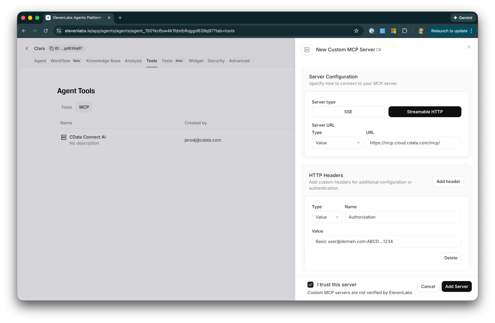 ステップ2:ElevenLabs に Connect AI MCP サーバーを追加