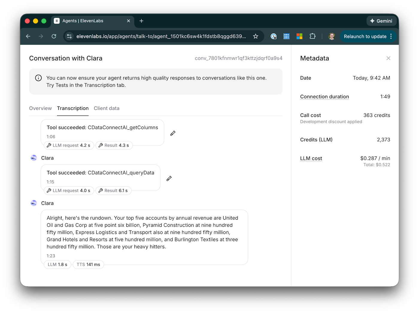 - CData Connect AI MCP サーバーが音声エージェントに割り当て可能になりました