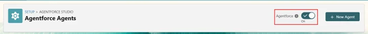 - Agentforce Agents に移動し、「Agentforce」をオンにします。
