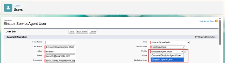 ステップ3: EinsteinServiceAgentユーザーとプロファイルを設定する