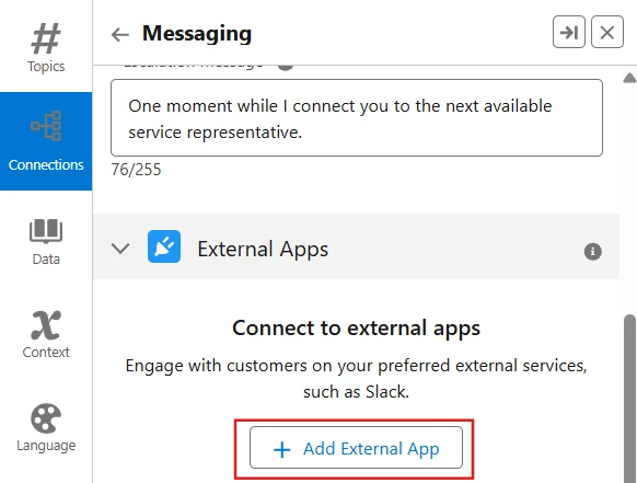 - 「Connections」を追加し、「Needs Setup」を選択して「External App」をクリック
