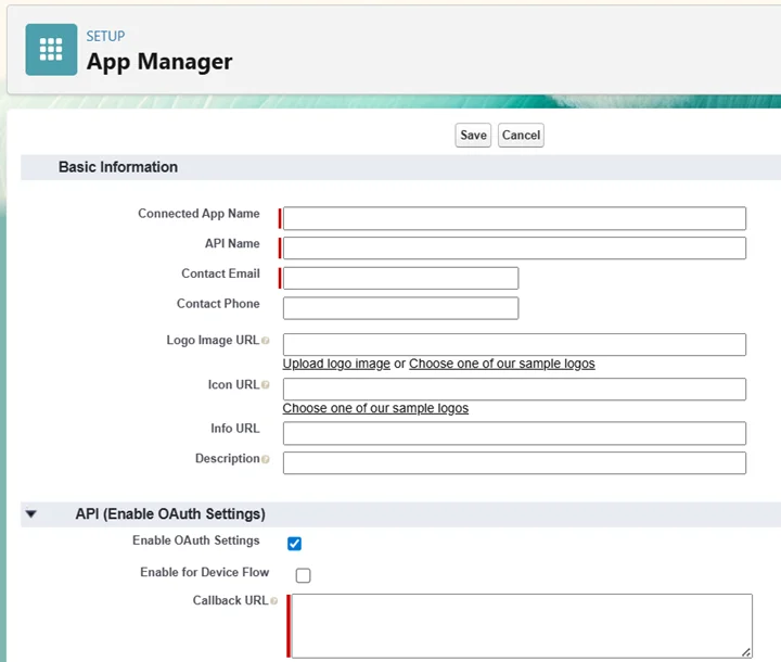 - 「Enable OAuth Settings」をオンにしてCallback URL: https://login.salesforce.com に設定しましょう。