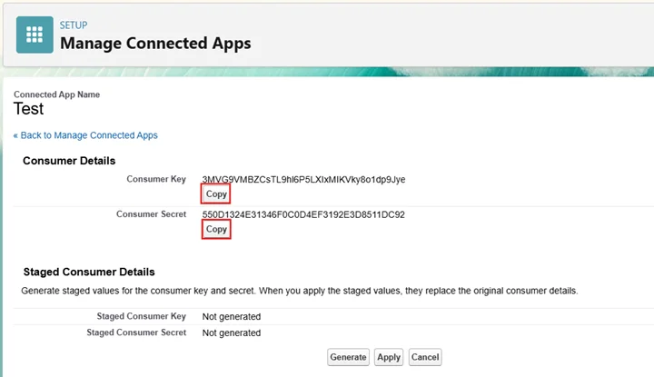 - 「SFDC_CLIENT_ID & SFDC_CLIENT_SECRET」: 接続アプリから取得