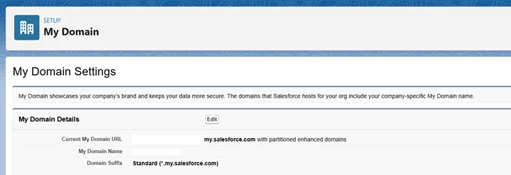 - 「My Domain」: 設定でMy Domain に移動し、トークンリクエスト用の...my.salesforce.com URLをコピーします。