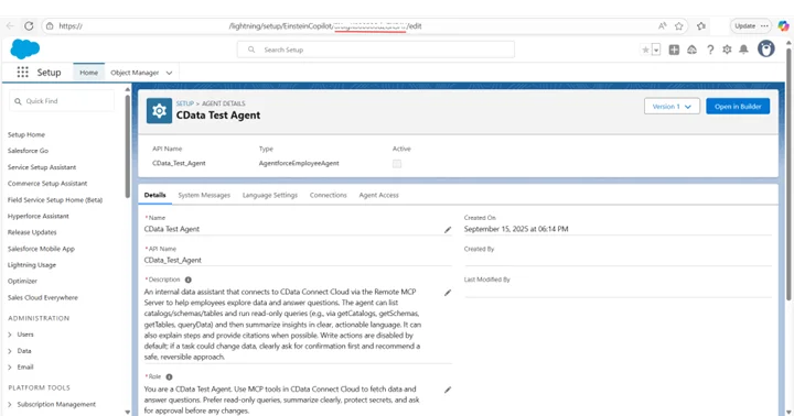 本記事では、Connect AI でSQL Server への接続を設定し、MCP Server をAgentforce に登録し、SQL Server データをクエリするワークフローを構築するために必要な手順を説明します。