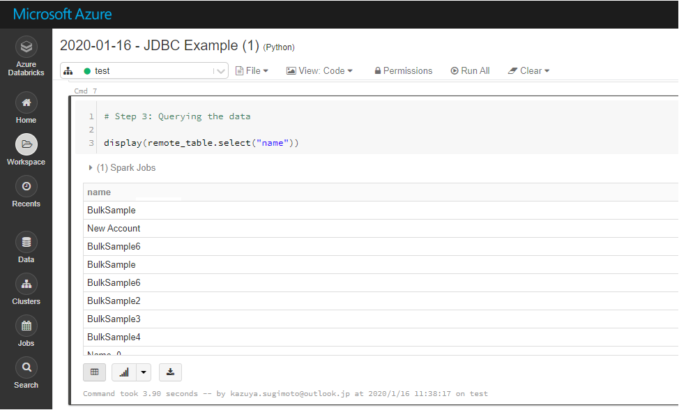 Azure Databricks でSQL Server のデータに接続してデータ処理を行う方法