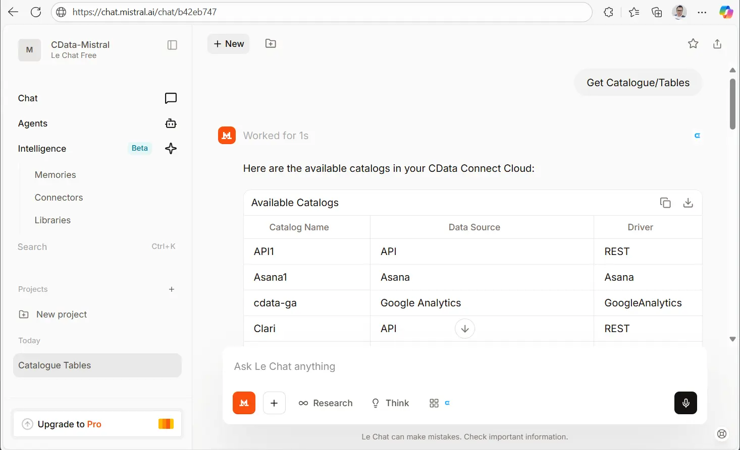 これで、Mistral Le Chat がCData Remote MCP Server を通じてStripe にリアルタイムでクエリをセキュアに連携できるようになりました。