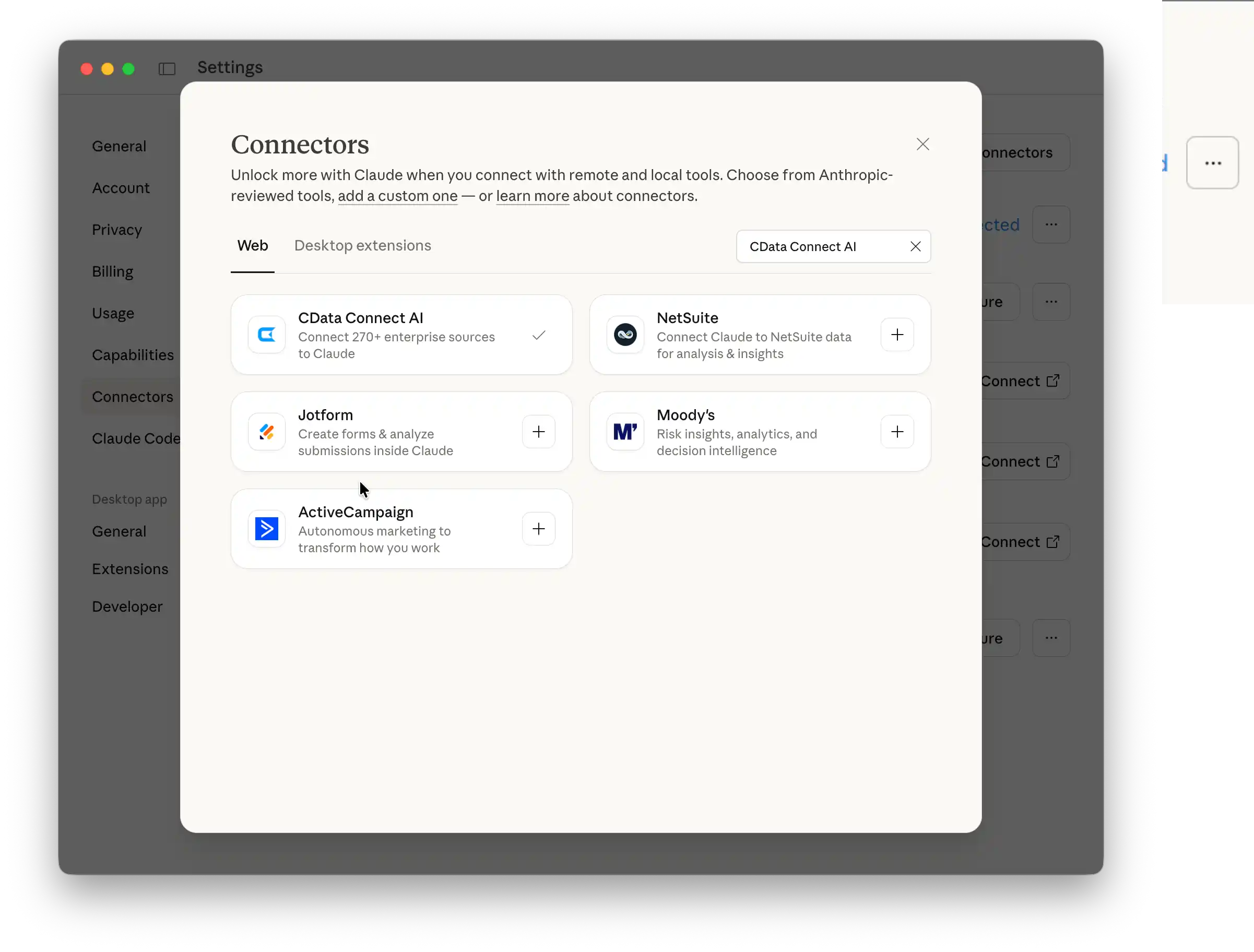 それでは、Claude に CData Connect AI コネクタを追加していきましょう。
