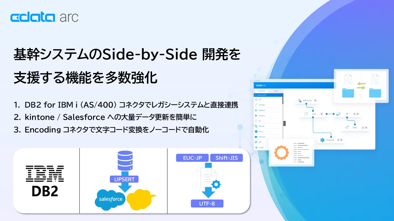 今回のCData Arc のアップデートではこれらの課題を解決し、基幹システムを活かしながらモダンなSaaS との連携を実現するSide-by-Side 開発をさらに促進します。
